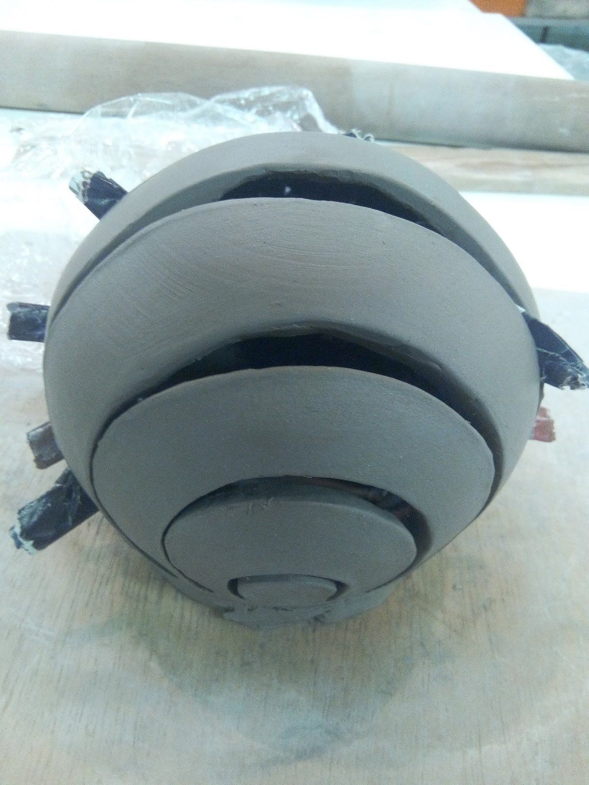 J'ai tourné une boule creuse en faïence blanche, puis, j'ai tracé mes jours dessus avec de jolies lignes circulaires concentriques...